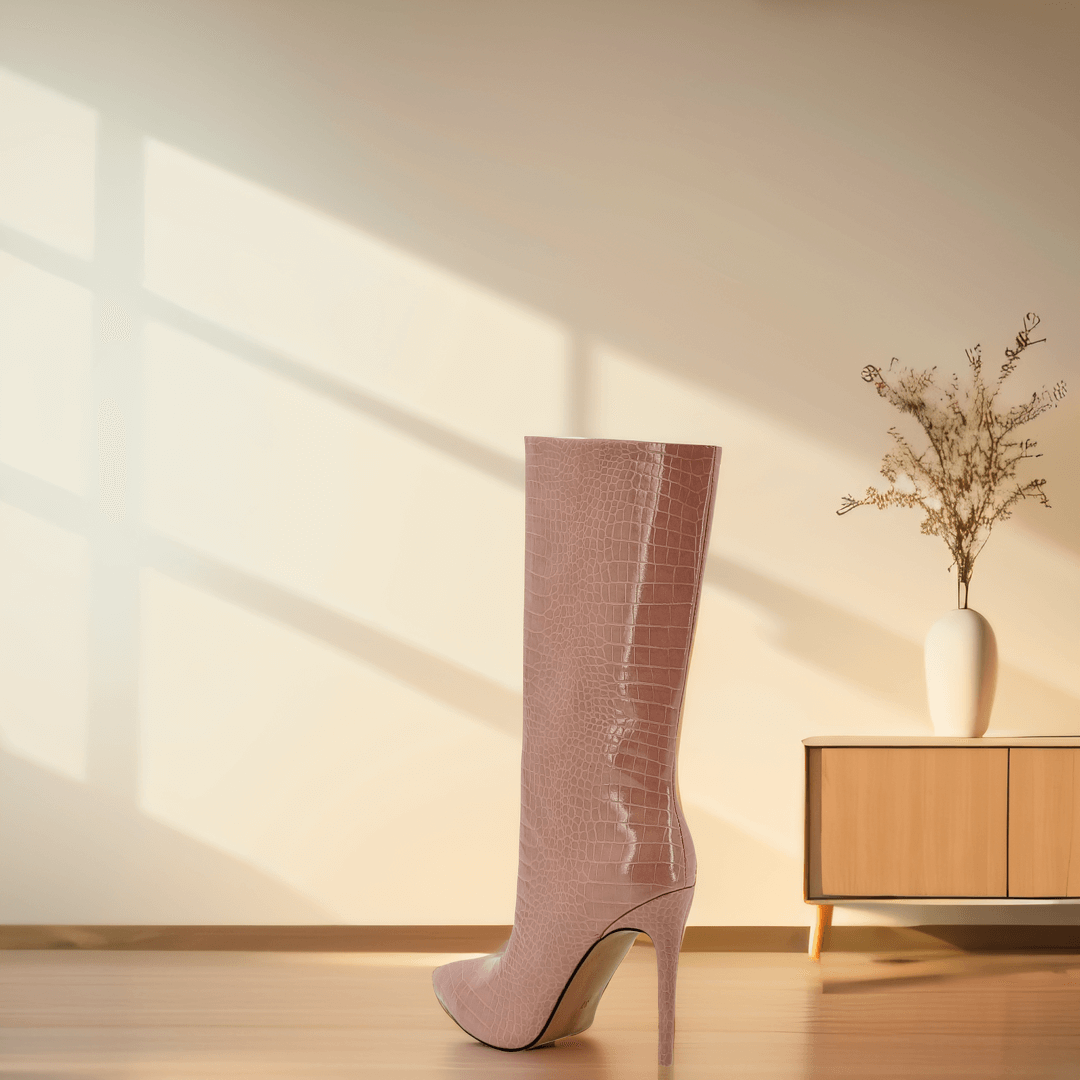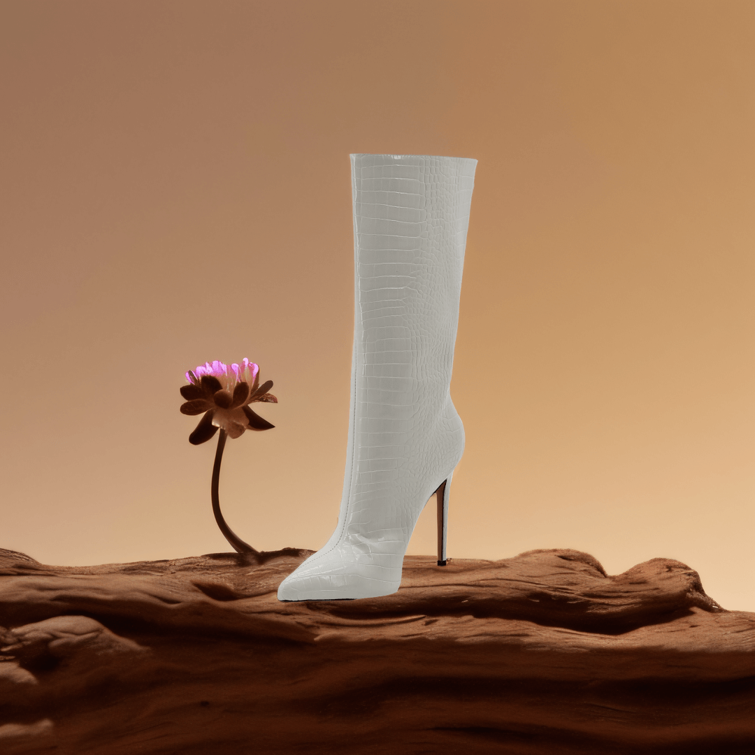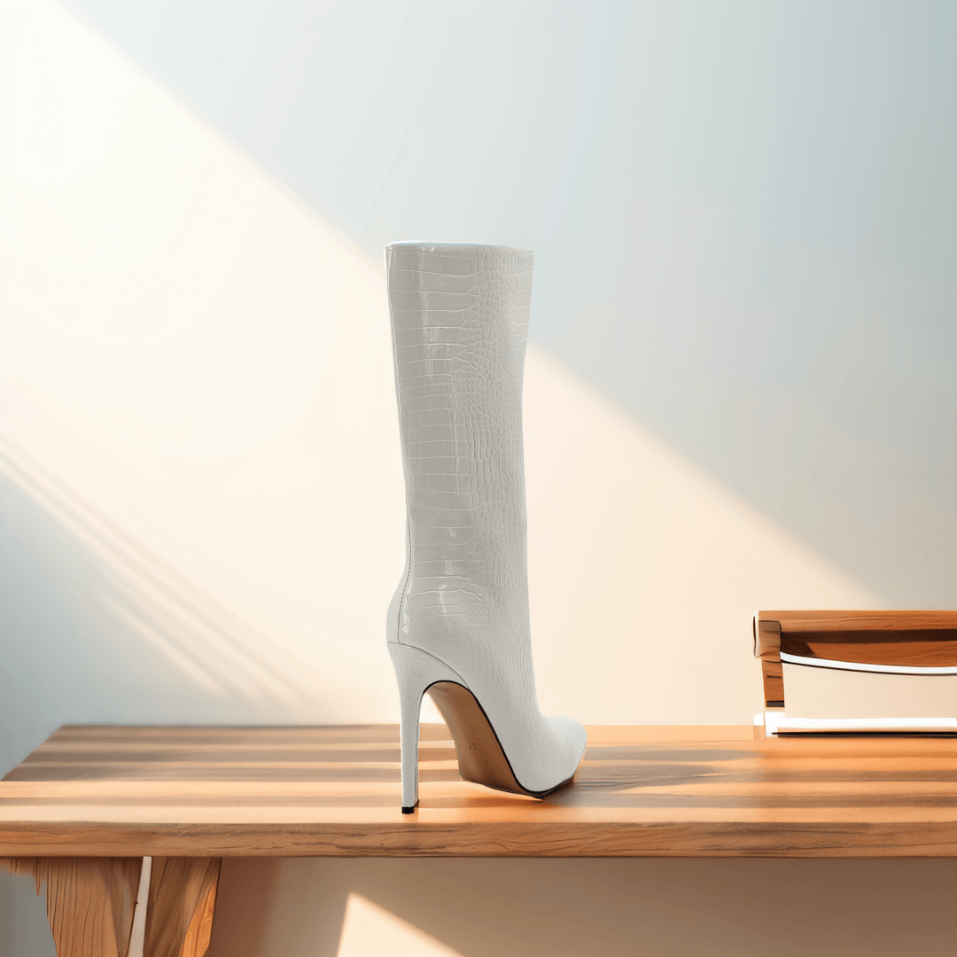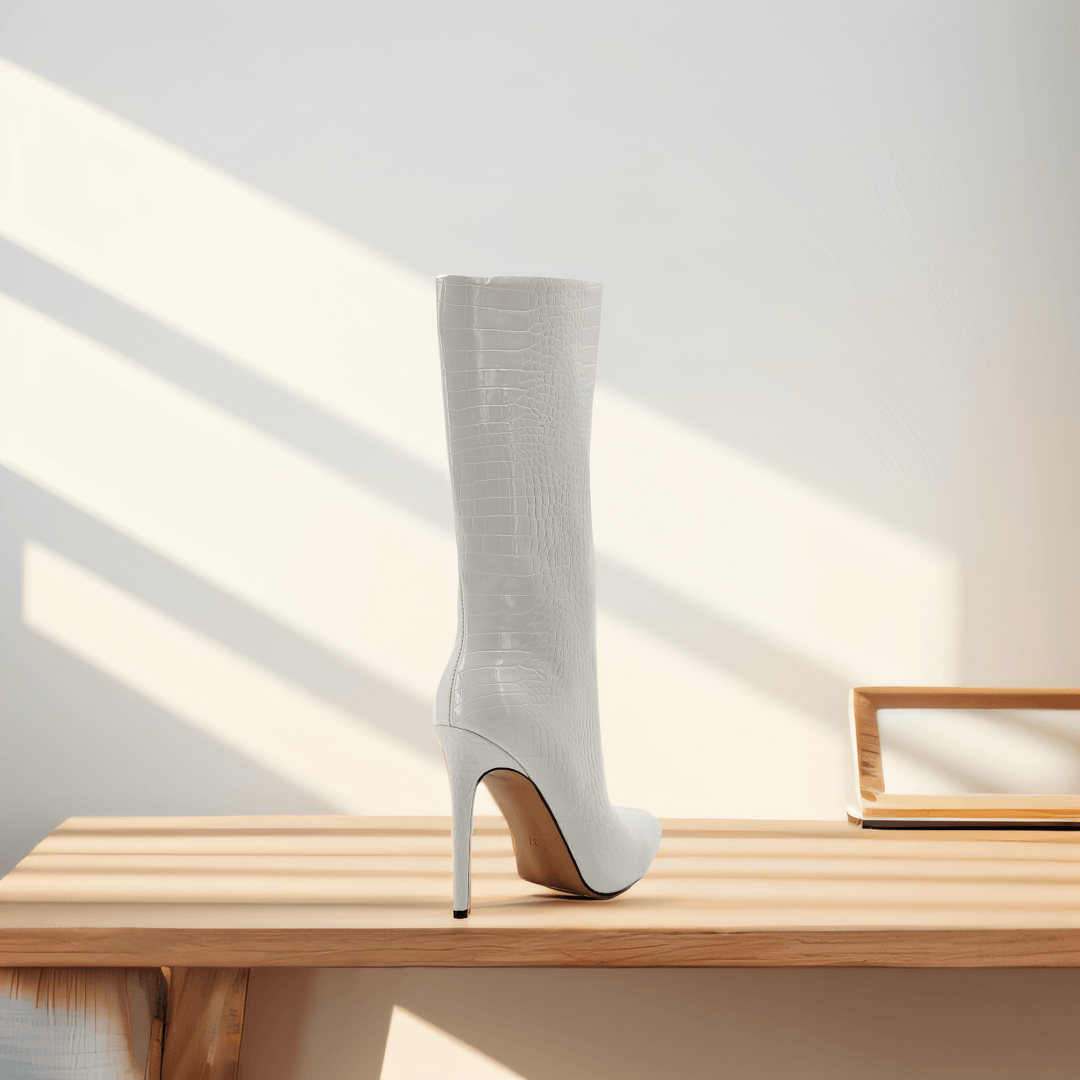 White crocodile patterned pointed thin high heels women's shoes - black anti slip sole - elegant and fashionable new choice