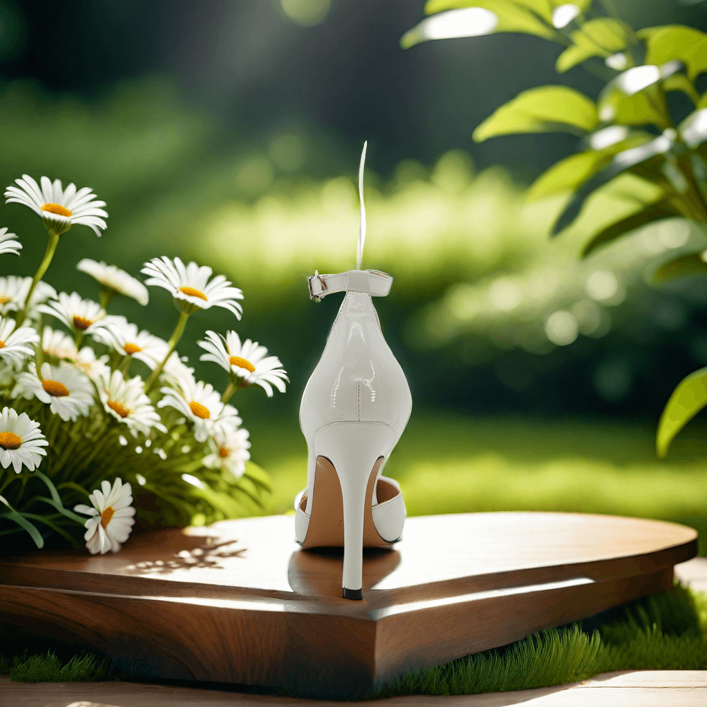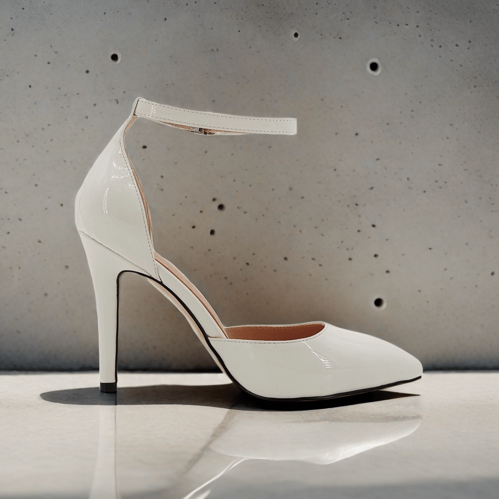 Pure White Glossy Stiletto Heels with Transparent Straps for Elegant Fashion