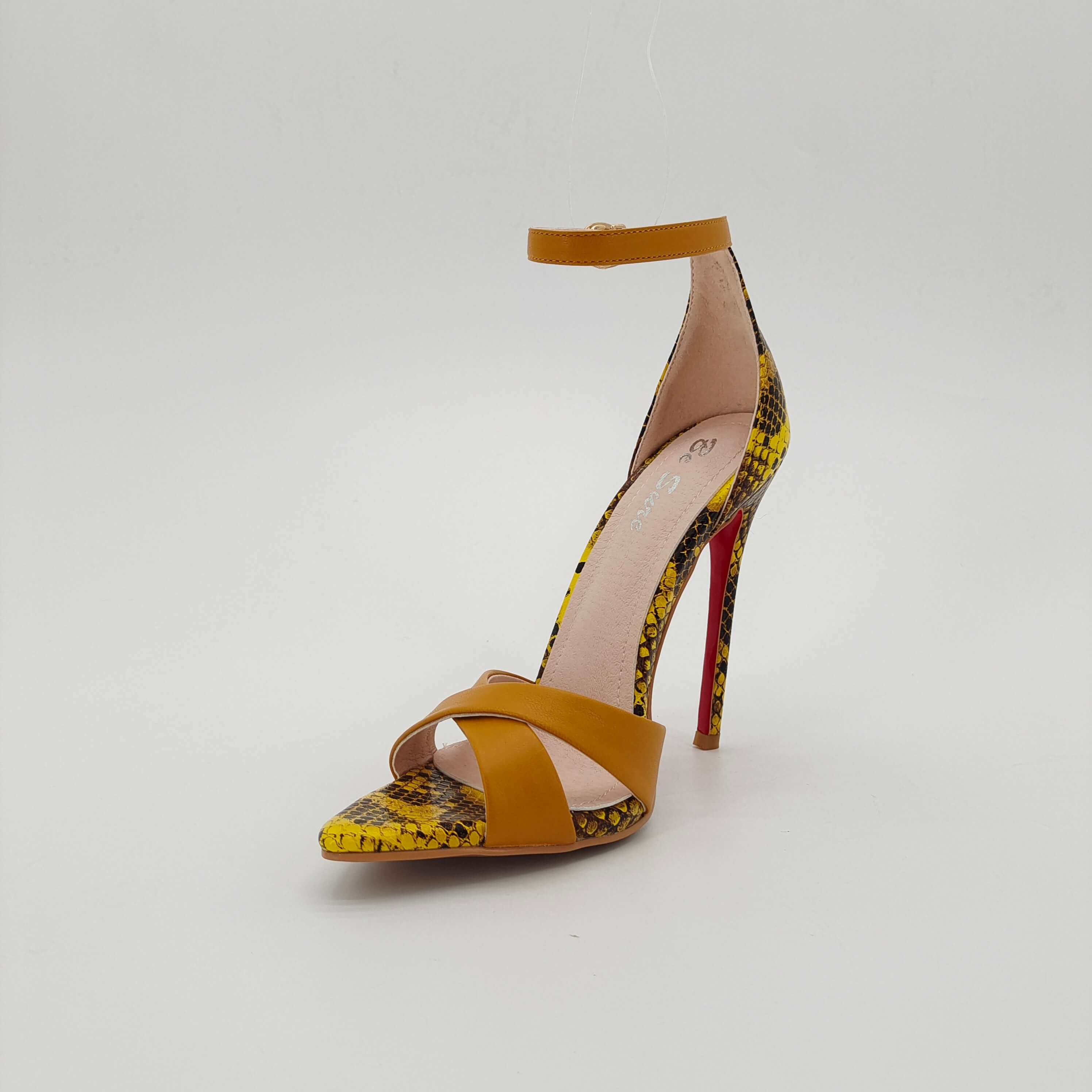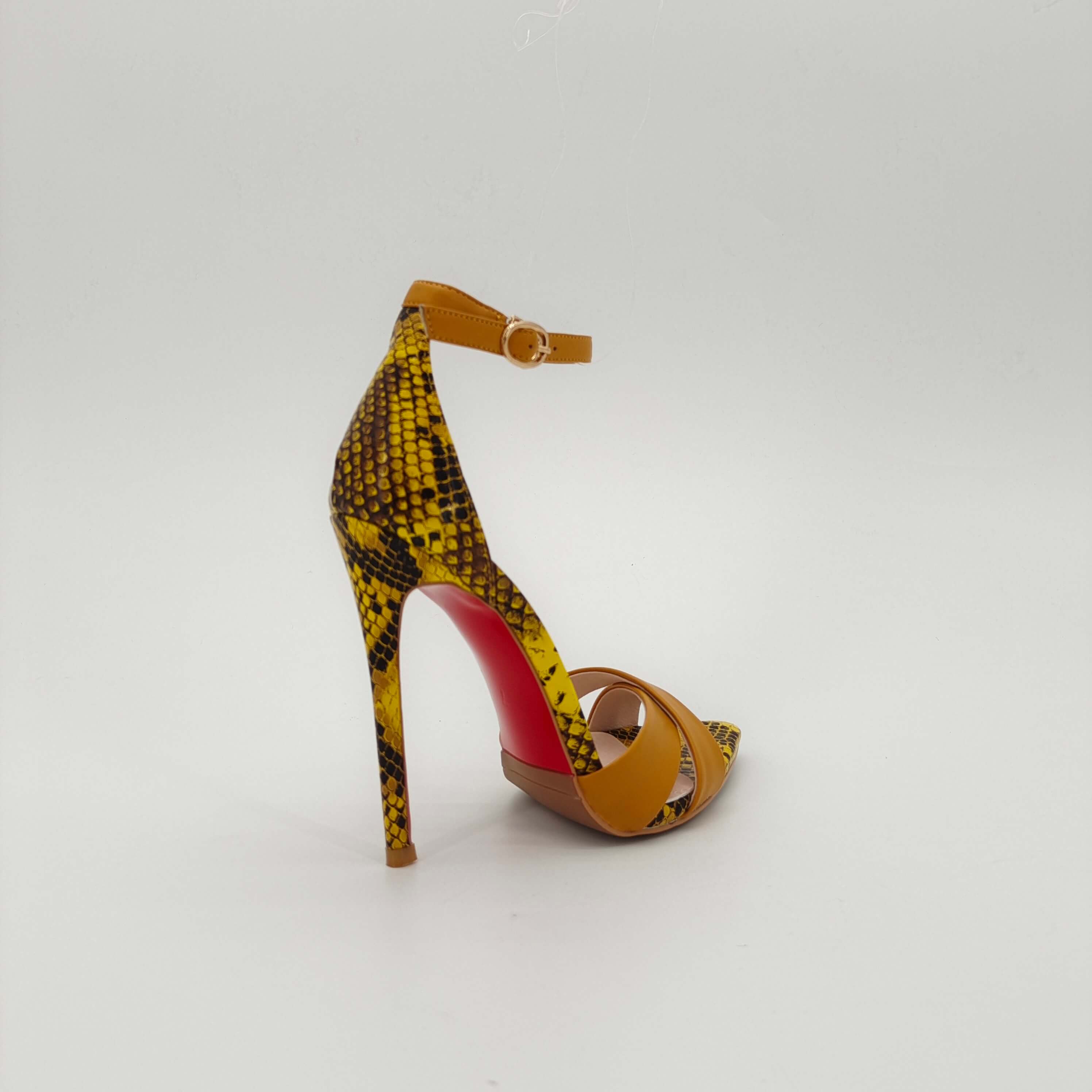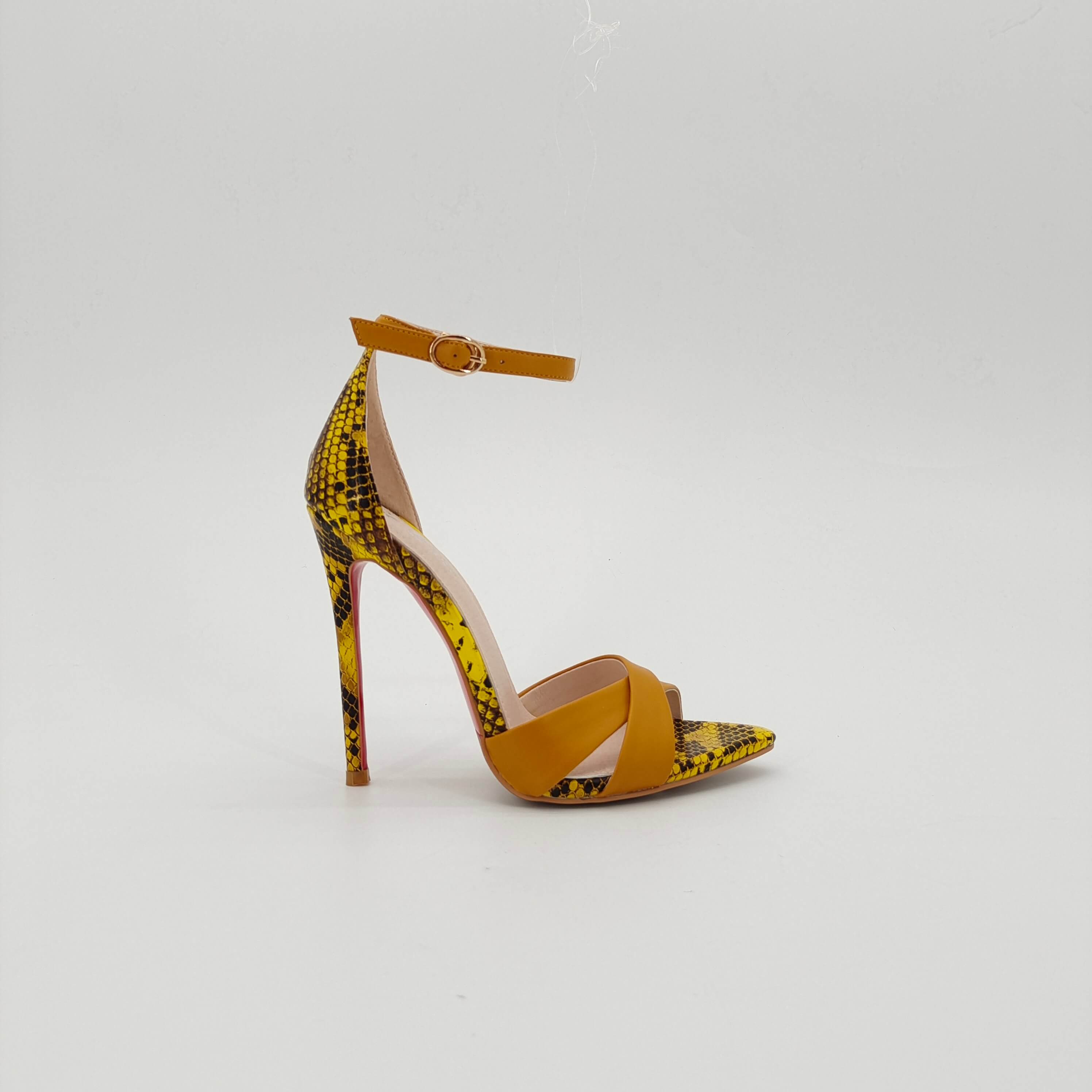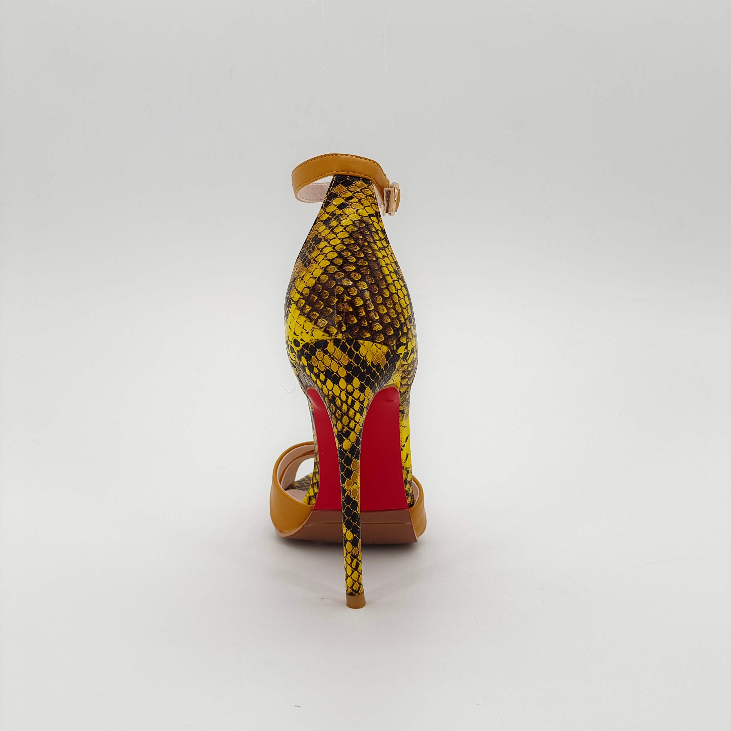 Fashionable snake patterned high heels, slim high-heeled cross strap design, modern women's shoes
