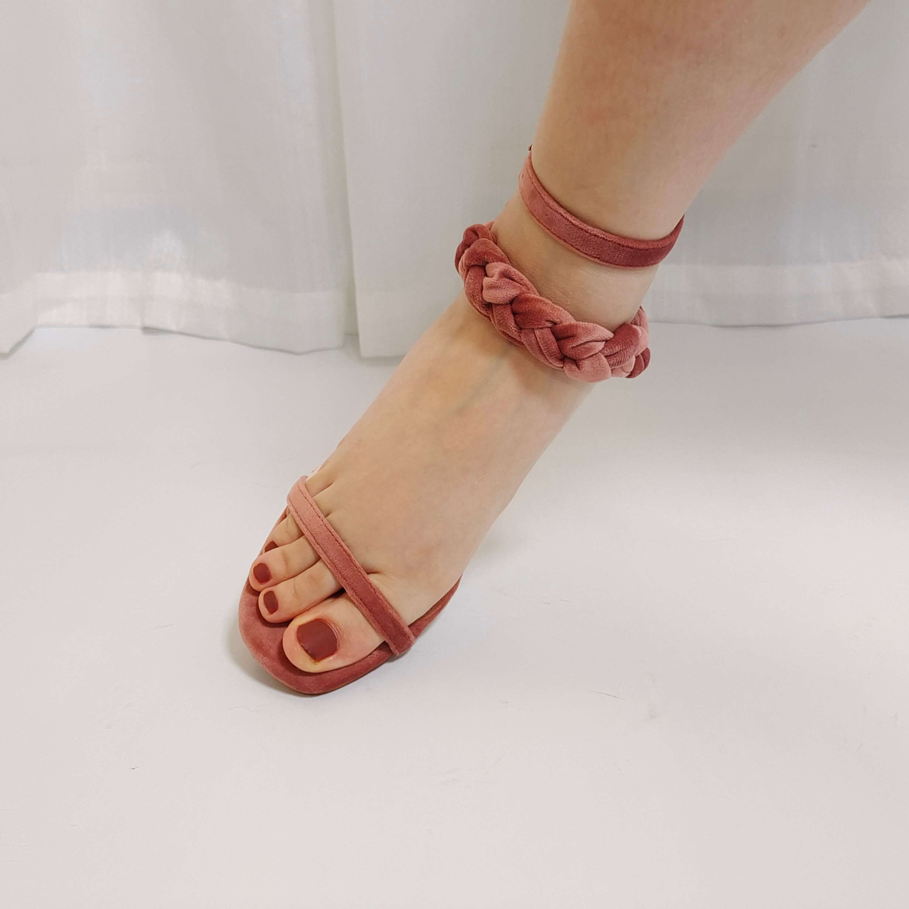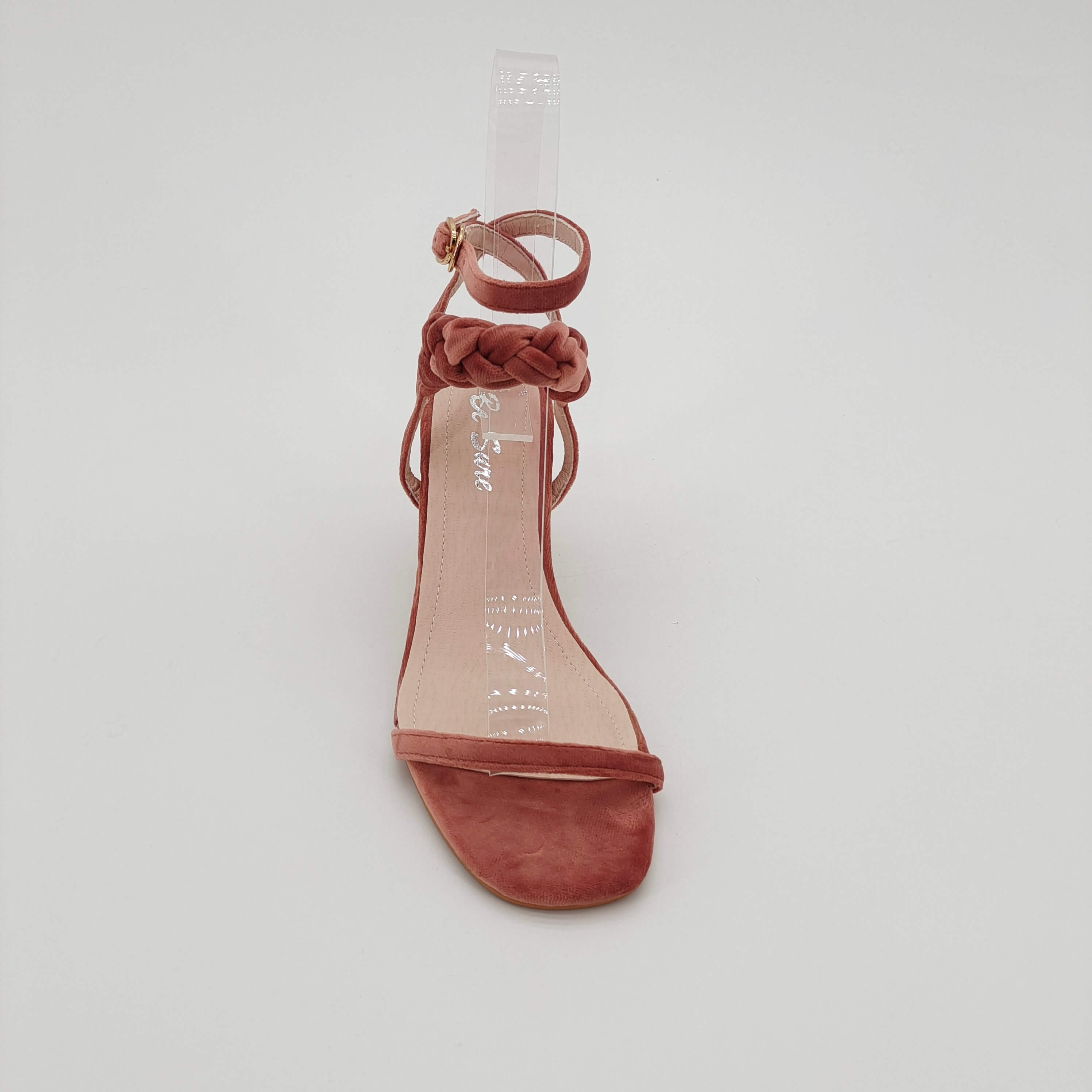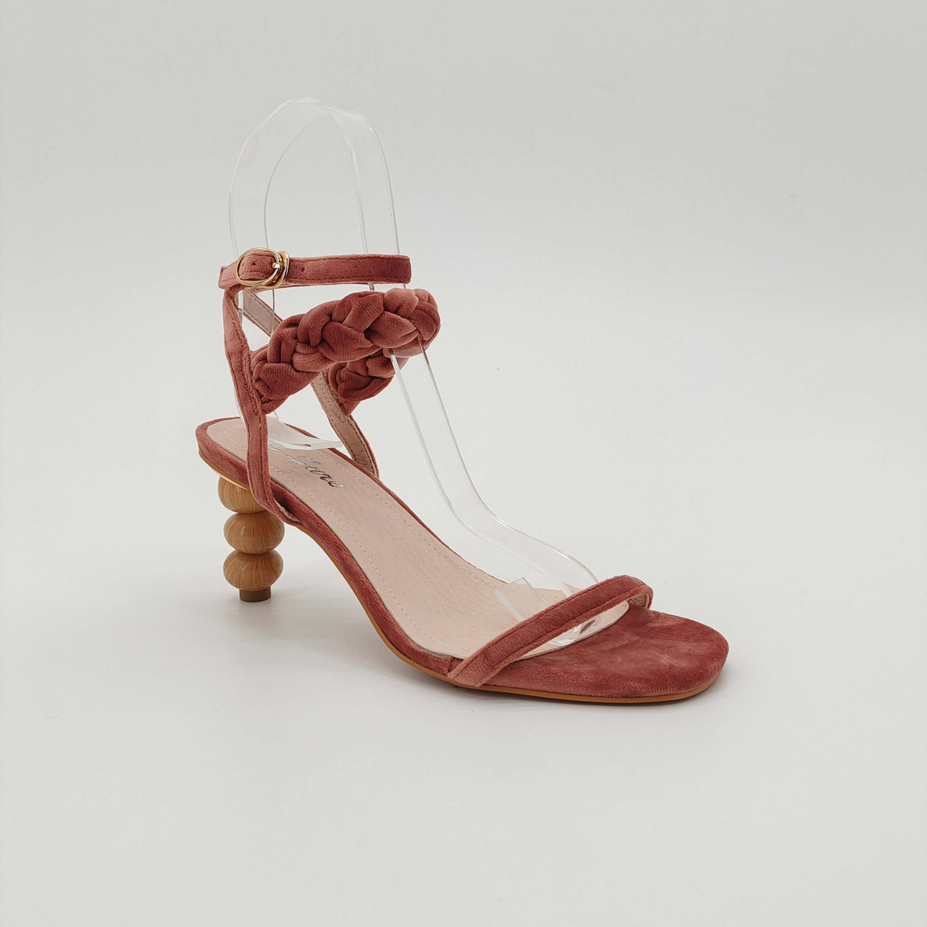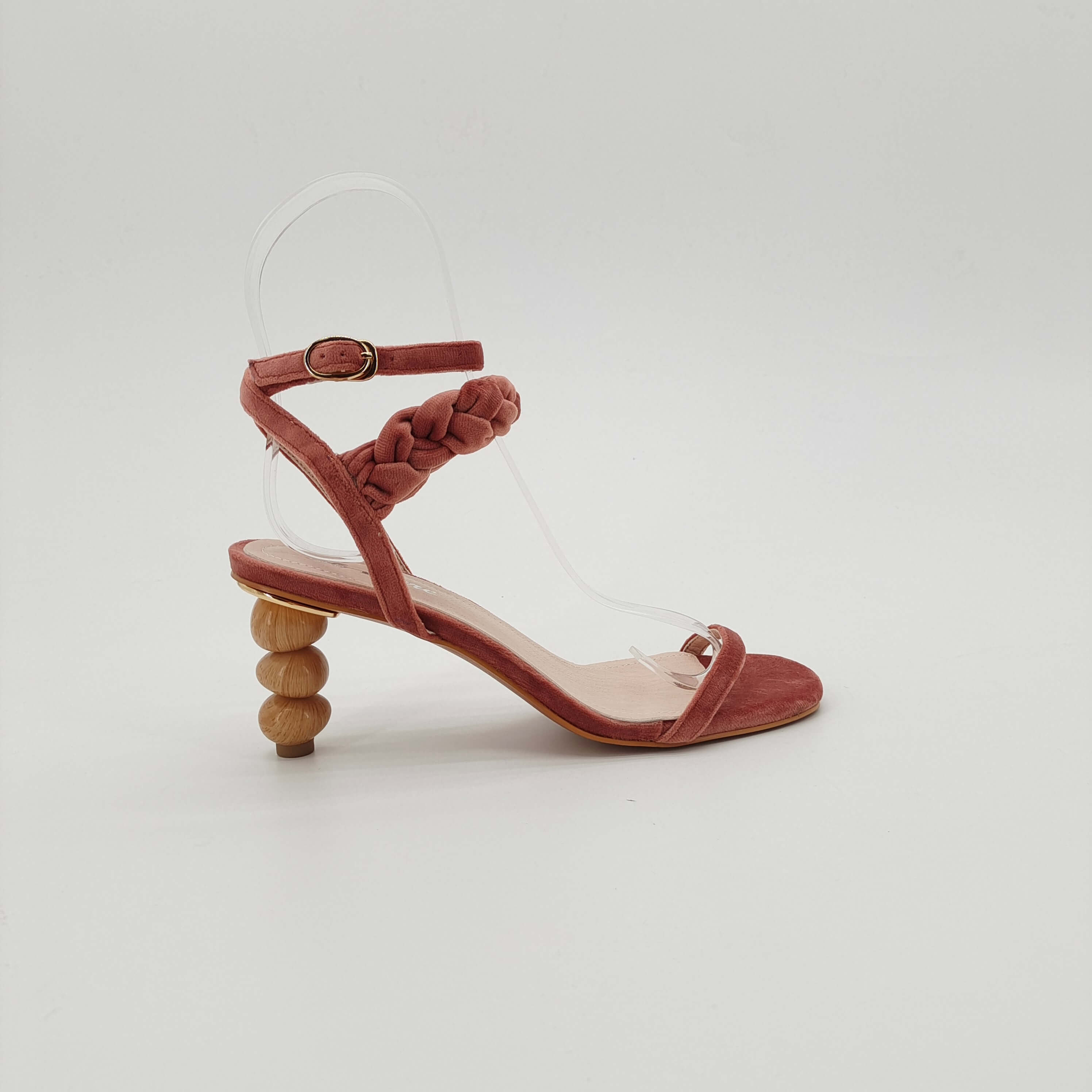 Pink High Heels, Light Brown Wood Bottom, Metal Buckle, Elegant Design for Women's Shoes